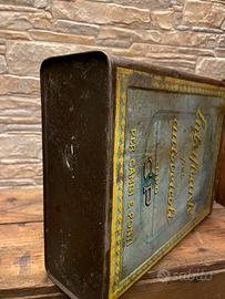 Vendo rara latta olio vintage fiat anni 20, la latta si presenta in buone condizioni visto l’età e la raritá. Il modello è 5 lt dimensioni circa 22cmx8,5cmx h30cm. Per altre foto non esitate contattarmi. Pezzo per veri collezionisti.