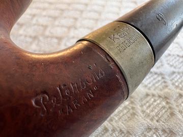 Proponiamo un esemplare di altissimo interesse per i puristi del fumo lento: una Peterson's autentica, serie Aran, che vanta la prestigiosa punzonatura K&P. Questo marchio (Kapp & Peterson) non è solo una firma, ma il sigillo di una storia che risale al 1865, garanzia di una lavorazione della radica impeccabile e di un design che ha fatto scuola nel mondo.