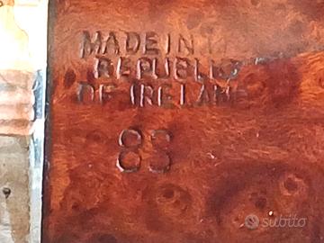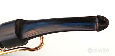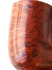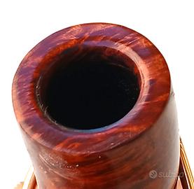 Marca / Produttore:Peterson of Dublin Modello / Shape:: System Pipe – Shape 8S (curva piena) Luogo di produzione::Dublino, Irlanda Marchiatura: “Peterson’s Dublin” “System”“Standard 8S” “K&P” (sulla vera in argento) “Made in the Republic of Ireland” La celebre linea System, sviluppata a partire dal brevetto di Charles Peterson (fine XIX secolo), rappresenta una delle innovazioni più importanti nella storia della pipa: sistema di raccolta della condensa fumata più fresca e asciutta equilibrio tecnico-funzionale superiore Le produzioni degli anni ’60–’70 sono oggi tra le più apprezzate dai collezionisti, per qualità costruttiva, materiali e fedeltà alla tradizione originale. Tipologia: Pipa System classica curva Shape: 8S (bent compatta, ben proporzionata) Materiale: Radica di Erica Arborea selezionata Finitura: colorazione contrastata rosso scuro-nero Bocchino: Originale in ebanite Sistema: P-Lip Peterson Montatura: Vera in argento sterling punzonata K&P 👉 Esemplare tipico della produzione Peterson anni ’70, con forte identità estetica e lavorazione profonda della superficie. 👉 Periodo di produzione stimato: circa 1970 Attribuzione basata su: marchio “Made in the Republic of Ireland” caratteristiche della linea System stile della vera in argento K&P conformazione del bocchino e del sistema interno Stato: Ottime condizioni (livello collezionistico) struttura perfettamente integra radica sana, senza crepe o difetti camera pulita e ben conservata bocchino originale in ottimo stato vera in argento originale con normali segni del tempo 👉 Pipa leggermente fumata, mantenuta con cura, non sottoposta a restauri invasivi. 🏆 CLASSIFICAZIONE Categoria: Pipa classica irlandese Linea: Peterson System Epoca: Vintage anni ’70 Livello: Medio-alto Interesse collezionistico: elevato VALUTAZIONE DI MERCATO 👉 Valore certificato: €250