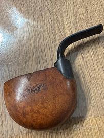 Rara Pipa Vintage "Vest Pocket" a forma di Mazza da Golf – Radica – Anni '50/'60 In vendita un pezzo da collezione unico nel suo genere: una pipa "Vest Pocket" (da taschino) modellata artigianalmente a forma di testa di legno da golf (driver). Questo oggetto rappresenta il perfetto connubio tra l'eleganza classica del golf e l'arte del fumo lento. La particolarità di questo modello è il bocchino girevole: una volta ruotato sopra il fornello, la pipa diventa piatta e compatta, ideale per essere riposta nel taschino senza lasciare fuoriuscire residui o cenere. Caratteristiche principali: • Materiale: Pregiata radica di erica con venature naturali che simulano il legno delle antiche mazze da golf. • Design: Forma a testa di driver con dettagli accurati; bocchino curvo in materiale polimerico nero (ebanite/bachelite). • Marchio: Punzonatura originale "VEST POCKET PIPE" sul lato. • Stato di conservazione: Oggetto vintage originale. Presenta una splendida patina del tempo che ne attesta l’autenticità. La radica è integra, il bocchino è solido e il meccanismo di rotazione è funzionante. (Nota: Segnalo piccoli segni d'uso dovuti all'età che aggiungono fascino al pezzo). Perché acquistarla? Perfetta come regalo per un appassionato di golf, come pezzo da esposizione in una vetrina di oggetti "Curiosa" o da aggiungere a una collezione di pipe particolari (System pipes). Un oggetto che non passa inosservato e che racconta una storia di stile d'altri tempi.