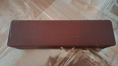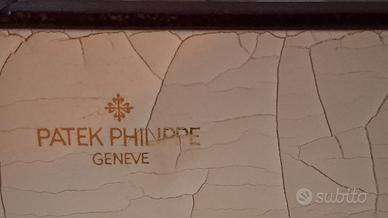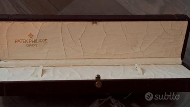 Rara Scatola porta orologio originale in pelle Patek Philippe, conteneva un Calatrava anni '90 in oro bianco 18 carati, a carica manuale, posso dirlo perchè l'orologio fu venduto da mia zia. La scatola l'ho ritrovata in casa e la zia ha confermato il tutto. Scatola veramente bella nel suo stato di conservazione purtroppo l'interno e deteriorato come da foto, perchè rimasta sempre chiusa, credo di averla riaperta io dopo il ritrovamento. Comunque il problema del Deterioramento è molto comune nelle scatole originali prodotte tra la fine degli anni '80 e i primi anni 2000, presentano il fenomeno del "flaking" (sfaldamento) il rivestimento interno tende a sbriciolarsi creando sfaldamenti o squamatura, un dettaglio che paradossalmente può confermarne l'età autentica. Dimensioni indicative: Circa 25 cm di lunghezza, 6,5 cm di larghezza e 3,2 cm di altezza. OGGETTO COME DA FOTO