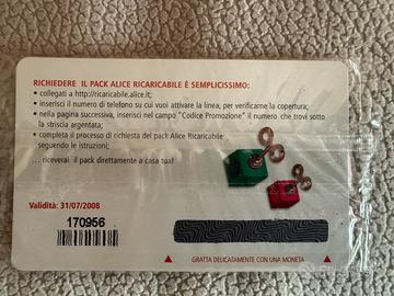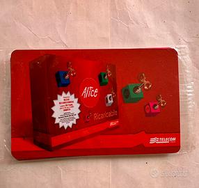 Rarissima scheda Alice Ricaricabile Telecom, integra nella sua confezione originale. Sul retro descrizione della tessera.