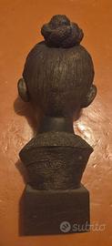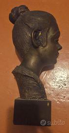 Rara Scultura in Bronzo di Antonio Duma (Galatina) - Busto Donna Salentina Descrizione dell'opera: Pregiata scultura d'autore in vero bronzo realizzata dal maestro Antonio Duma di Galatina. L'opera rappresenta un busto femminile con la tipica acconciatura a "tuppo", resa con il verismo e l'intensità espressiva che caratterizzano la produzione dello scultore salentino del Novecento. La scultura poggia sulla sua base originale in legno, completa di targhetta metallica identificativa dell'artista. Dettagli Tecnici: Autore: Antonio Duma (Galatina). Materiale: Bronzo fuso (base in legno massello). Dimensioni: Altezza complessiva circa 40 cm | Larghezza circa 15 cm. Segni distintivi: Targhetta originale sulla base e firma incisa. Stato di conservazione: Integrità perfetta, patina originale preservata. Nota sulle foto: L'opera è stata fotografata subito dopo il recupero e presenta ancora un leggero strato di polvere superficiale che non intacca minimamente la qualità del bronzo. Su richiesta, sono disponibile a inviare ulteriori foto dettagliate o video più chiari per mostrare ogni particolare della fusione e della patina. Prezzo e Modalità Prezzo consigliato: € 750,00 (Trattabili per acquirenti seri). Spedizione/Ritiro: Data la qualità e il peso del bronzo, si predilige il ritiro a mano in zona Galatina/Lecce. Disponibile alla spedizione previo accordo su imballaggio professionale. Consigli by gemini Perché questo prezzo? "Analisi del ricercatore: Le opere di Duma in materiali come gesso o terracotta hanno valutazioni più basse (200-300€). Trattandosi di un bronzo di grandi dimensioni (40 cm), la rarità e il valore intrinseco del metallo giustificano una richiesta tra i 700€ e gli 850€"
