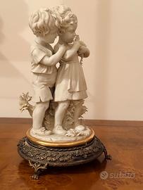 Splendido gruppo scultoreo in pregiata porcellana biscuit (finitura opaca tipo marmo) della storica manifattura Triade del maestro Benacchio di Bassano del Grappa.