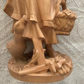 Splendida scultura in legno interamente intagliata a mano, raffigurante la Santa Notburga, protettrice dei contadini e dei collaboratori domestici. L'opera ritrae la santa in vesti rurali con i suoi attributi tipici: la falce e il cesto.