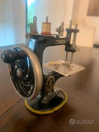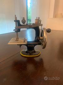 Splendido esemplare di macchina da cucire in miniatura Singer Sewhandy Modello 20, prodotta negli Stati Uniti nel 1910. Non è un semplice giocattolo, ma un capolavoro di ingegneria d'epoca in ghisa nera pesante. Origine: Realizzata negli USA (sigla originale presente sotto il marchio).Condizioni Estetiche: Eccellenti per l'età. Lo smalto nero è lucido, privo di ruggine e le decalcomanie dorate del marchio Singer sono nitide e ben conservate