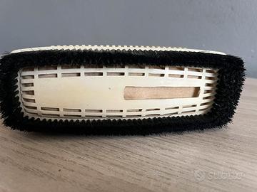 Vendesi splendida spazzola elettrica aspirante Termozeta, un’icona del design industriale italiano degli anni '60. L’oggetto è in condizioni estetiche eccellenti e perfettamente funzionante. Questo esemplare è una vera rarità per collezionisti poiché include il set completo originale: Spazzola Mod. Dep. (Modello Depositato) con corpo color panna e interruttore rosso. Scatola originale con grafica d'epoca conservata integralmente. Certificato di Garanzia originale (non timbrato), riportante il codice di serie/lotto 166. Dettagli tecnici: Alimentazione: 220V (cavo e spina originali integri). Funzione: Aspirazione pelucchi e polvere per abiti e tappeti. Produzione: Made in Italy, databile circa 1966. Un pezzo di modernariato perfetto da esporre o come regalo per amanti del design rétro. La plastica è lucida, senza crepe e il motore gira fluido.