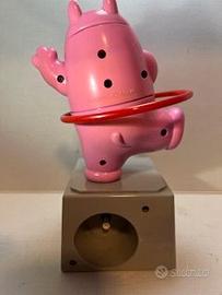 Proposta sveglia vintage originale SUNKO anni ’80, modello con action figure animata di ippopotamo che balla con hula hop, autentico esempio di design pop e giocoso tipico dell’epoca.