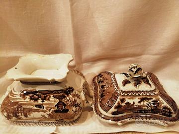 Forme e decori inusuali e originali, in bellissime tonalità e sfumature di marrone su fondo bianco. Questo genere di piccole zuppiere venivano anche definite “egoiste” in quanto di utilizzo esclusivo e individuale.