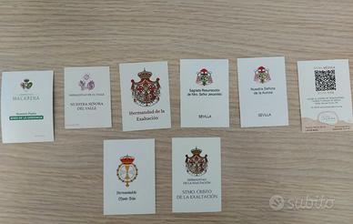Raro lotto di 18 immagini sacre della settimana santa di Siviglia, otto delle quali con logo della confraternita