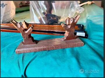 ARTICOLO RARO: PREGIATI fermalibri vintage stile art deco riconducibili anni 30. Realizzati da BOHME u HENTSCHEL, in legno intagliato a mano raffiguranti Scottish Terrier. CONDIZIONI: ottimo stato conservativo ma essendo un articolo antico/vintage può presentare i lievi segni del tempo che ne attestano l'originalità e il fascino. Proveniente da collezione privata di famiglia.