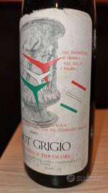 Vendo rarissima e pregiatissima bottiglia di Pinot Grigio della vendemmia del 1978 mai aperta, riserva Frecce Tricolori. Imbottigliata nella cantina del Friuli Centrale S.p.A. di Bertiolo(UD). Contenuto Lt 0.720. Gradi 12.5. Commemora il passaggio delle consegne 313 G.A.A. Col. Pil. PAOLO BARBERIS - Ten. Col. Pil. CORRADO SALVI effettuato il 24 ottobre 1979 a Rivolto (UD) sede Frecce Tricolori. L'etichetta riporta la massima: " col. BARBERIS ai romani... ... tutti salvi i friulani... ". Stato di conservazione come in foto.