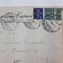 Rarissima busta viaggiata del 1944 della storica ditta “Aeroplani Caproni S.A.” di Milano, importante azienda aeronautica italiana attiva durante la Seconda Guerra Mondiale.