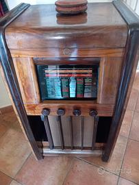 Radio a Valvole CGE Mod.1333 ANNO 1938 Descrizione: Numero di tubi: 5 Valvole ECH36K7G6Q7G6F6WE54 Principio generale Supereterodina (in generale); ZF/IF 468 kHz Particolarità Giradischi Perpetuum Elnex Tensioni di funzionamento Alimentazione a corrente alternata (CA) Altoparlante AP presumibilmente dinamico (bobina mobile) Materiali Mobile in legno,radica di Noce. Modello:1333- CGE, Compagnia Generale di Elettrricita'. L' apparecchio si accende. Non si effettuano spedizioni, ritiro in zona