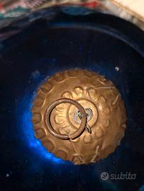 Propongo in vendita una witchball d’epoca vittoriana proveniente da un lotto di tre esemplari recuperati insieme, rari oggetti in vetro soffiato prodotti in Inghilterra nella seconda metà dell’Ottocento. Nel folklore del periodo, queste sfere venivano appese vicino alle finestre o alle porte per proteggere le abitazioni dall’ingresso di energie ostili e, soprattutto, dalla cosiddetta “malizia delle streghe”. Si credeva infatti che una strega, attirata dalla superficie lucida e dal colore intenso della sfera, restasse intrappolata nel suo riflesso o confusa dai filamenti interni, incapace di proseguire oltre o di portare sfortuna alla casa. La sfera è realizzata in vetro soffiato a mano, con pareti sottili ottenute direttamente dalla canna e il caratteristico segno di pontello dovuto al distacco finale. Alcuni esemplari presentano una leggera iridescenza naturale o filamenti interni, sottili fili di vetro inseriti quando il vetro era ancora caldo, elementi tipici della produzione artigianale dell’epoca. L'occhiello metallico è originale, in ottone o ferro lavorato, compatibile con le montature vittoriane. Il colore blu cobalto, con le sue sfumature, è particolarmente raro: veniva ottenuto aggiungendo al nitrato d'argento ossido di cobalto, materiale costoso e complesso da dosare, e per questo la produzione in questa tonalità fu limitata. Le witchball blu autentiche sono oggi tra le più ricercate sul mercato antiquario. Le dimensioni sono di questo esemplare sono di un diametro di 15cm e provengono tutte dallo stesso lotto originale. Si tratta di un oggetto storico affascinante, legato alla tradizione popolare e al simbolismo protettivo delle streghe, ideale per collezionisti, appassionati di folklore o semplici amanti degli oggetti d’epoca con una storia da raccontare.