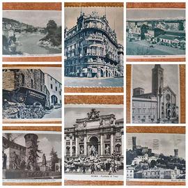 Disponibili Rarissime cartoline d'epoca viaggiate generalmente negli anni '30, '40 e '50 - la maggior parte in bianco e nero, qualcuna colorata - con foto di città e località come Roma/ Venezia/ Firenze/ Torino/ Rimini/ Perugia/ Napoli/ Bologna/ Modena/ Piacenza/ Ferrara/ Forlì/ Genova/ La Spezia/ Trieste/ Cuneo/ Como/ Teramo/ Ascoli Piceno/ Chieti/ Pescara/ Bari/ Ortona/ L'Aquila/ Fiuggi/ Pompei/ Potenza/ Acquasanta/ Montorio al Vomano/ Bugnara/ Isola del Gran Sasso/ Cervignano del Friuli/ Cengio/ Quadri/ Niella Tanaro/ Civitella del Tronto/ Bagno di Romagna/ Gioiosa Ionica/ Chianciano/ Altipiano dei Sette Comuni/ Bellante, eccetera. Ne ho anche qualcuna estera, ad esempio di Francia, Spagna, Austria, Slovenia e quelle delle colonie italiane in Africa. Sono tutte cartoline di inestimabile valore storico-documentaristico, poiché testimoniano fedelmente come erano quei luoghi in epoche remote; inoltre, essendo quasi tutte viaggiate, portano con sé anche il valore dei francobolli e timbri sul retro, anch'essi spesso rari e di valore.