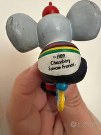 Vendo - in condizioni ottime come da foto - questo raro gadget/portachiavi, marcato sul retro “1989 Chambéry Savoie France”, creato in occasione del Tour de France di quell’anno. L'elefantino ha una zampa a terra e le mani sul manubrio, e veste la tradizionale maglia con i colori iridati. Altezza totale 6 cm.