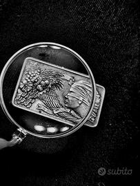 Vendo raro e introvabile lingotto d'argento con una purezza del 999/000 da 50gr. con incisione raffigurante la dea bendata della fortuna, pezzo per collezionisti. Disponibile per visione.
