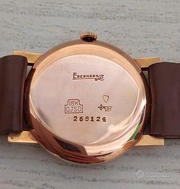 Rarissimo orologio Eberhard bullseye anni '40-'50, cassa Ginevrina in oro 750/1000, quadrante bicolore con “secondino” molto ricercato, calibro movimento E10.