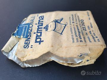 Rarissimo pacchetto vuoto, morbido, di sigarette italiane vintage anni ‘50; marca "NAZIONALI" senza filtro dei Monopoli di Stato, con la pubblicità di una lavatrice a mano, sul retro. Il pacchetto è tagliato da un lato, come risulta visibile dalle foto. Oggetto facente parte di collezione privata anni 70/80. Oggetto prezioso per collezionisti.