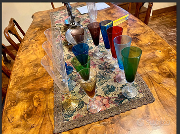 ARTICOLI RARI: PREGIATO set di nr13 bicchieri/flut da champagne in vetro soffiato colorato di Murano. VINTAGE riconducibili XX Secolo.CONDIZIONI: ottimo stato conservativo.