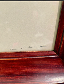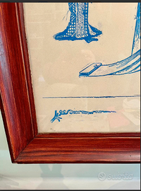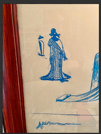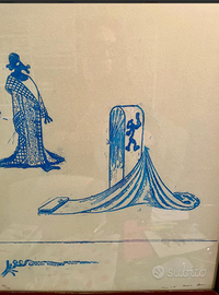 ARTICOLO RARISSIMO: OPERA d'ARTE multipla NUMERATA e FIRMATA "La CANZONE della DECERVELATURA" (o Lieux Communs Décervelages) un acquerello monocromatico blu surrealista dell'artista tedesco MAX ERNST, racchiuso in cornice di legno d'epoca. Antico/Vintage riconducibile al 1971. CONDIZIONI: ottimo stato conservativo ma essendo un articolo antico/vintage può presentare i lievi segni del tempo che ne attestano l'originalità e il fascino. Proveniente da collezione privata Villa Veneta del '900. MISURE: L45xh60cm DETTAGLI: Il titolo fa riferimento al concetto surrealista di "decervelaggio" (o decervellazione), che suggerisce una rottura con la logica razionale e le convezioni sociali. L'opera presenta figure oniriche e biomorfiche tipiche dello stile di Ernst, noto per l'uso dell'inconscio nella creazione artistica. Max Ernst è stato una figura fondamentale sia nel movimento Dada che in quello Surrealista.