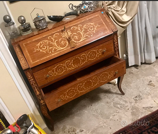 PREGIATA ribaltina/scrittoio/secretaire in stile Luigi XV, intarsiata con motivi floreali, realizzata con maestria artigianale con dettagli intricati e un design che riflette l'eleganza del periodo. Antica riconducibile ai primi del Novecento. Ideale per un ufficio classico o come complemento decorativo in un salotto. CONDIZIONI: ottimo stato conservativo ma essendo un articolo antico/vintage può presentare i lievi segni del tempo che ne attestano l'originalità e il fascino.