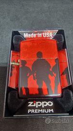 Raro ZIPPO Premium per il mercato USA, no Europa. con nuova tecnica di stampa a 580° raffigurante dei soldati americani in missione su sfondo rosso finitura luccicante. Soldiers red sky design