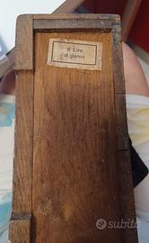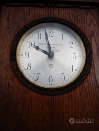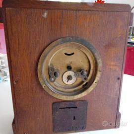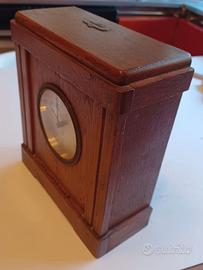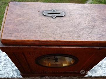 Raro articolo da Collezione usato come ornamento da esporre in casa.Particolare la struttura ART NOVEAU in pregiato legno di ROVERE. Sveglia-Orologio'-Salvadanaio( chiave perduta ma risolvibile da ferramenta). Orologio-sveglia di prestigiosa marca tedesca Ottocentesca"JUNGHANS"il cui logo e' ben visibile all" interno della stellina posta sul quadrante che appare di particolare raffinatezza per l' eleganza,l'armonia e la facile lettura. Ideata su commissione di INA Assicurazioni ( pochi esemplari esistenti) circa 100 anni fa. Misure:19x23x9.50. Sul retro farfallina di destra da' orario di sveglia,quella di sinistra carica l' orologio. Revisionato,pulito,perfettamente funzionante. Provenienza: collezionista lombardo.
