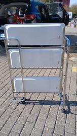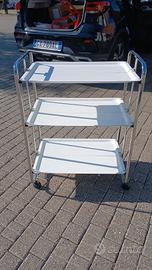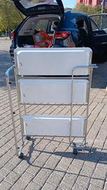 BELLISSIMO E RARO CARRELLO PORTAVIVANDE A 3 RIPIANI BIANCO VINTAGE PIEGHEVOLE CON ROTELLE.