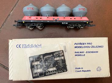carro merci cisterna trasporto cemento BTK delle ferrovie dello Stato cecoslovacche,ottimo stato, con scatola originale contenente gli aggiuntivi non ancora montati.