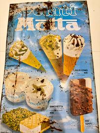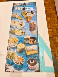 Splendida e autentica tabella pubblicitaria in latta litografata dei Gelati Motta, risalente ai primi anni '70 . Un pezzo originale dell'epoca che arredava i bar e i lidi balneari dell'Italia del boom economico.
