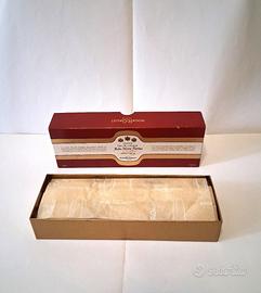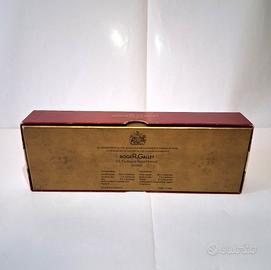 Raro e introvabile set Roger & Gallet con 3 saponette profumate da 100g dalla rinomata fragranza iconica Jean-Marie Farina Extra-Vieille ancora perfettamente sigillate nella loro carta velina plissettata originale. Mai usato (NOS - New Old Stock), conservato perfettamente in armadio per decenni. Articolo da collezione, non destinato all'uso cosmetico. Scatola vintage orizzontale in colorazione oro e bordeaux, fuori produzione. Presenta alcuni lievi segni del tempo dovuti alla conservazione in armadio, che ne attestano l'autenticità e il fascino rétro. Il retro della confezione conferma che si tratta di un'edizione vintage di grande pregio, in quanto riporta l'indirizzo 62 Faubourg Saint-Honoré sede storica dal 1932 a 1984 della "Boutique du Bonheur" (Boutique della Felicità). Altri dettagli di pregio visibili sulla confezione: 1. ll codice EMB 27056 identificativo di imbustamento francese (EMB sta per Emballeur). Il numero 27056 corrisponde allo storico stabilimento di Roger & Gallet a Bernay. La presenza di questo codice suggerisce una produzione antecedente alla metà degli anni '80. 2. By Appointment to HM Queen Elizabeth II La dicitura "Fornitore di saponi di Sua Maestà la Regina Elisabetta II" (in inglese e francese) indica che il brand deteneva il Royal Warrant. Questo sigillo di garanzia veniva concesso solo a fornitori d'eccellenza della casa reale britannica. Roger & Gallet ha sfoggiato questo titolo per decenni, ma la grafica dorata così strutturata è tipica delle confezioni di lusso prodotte tra gli anni '70 e '80. Un'autentica gemma vintage per chi ricerca l'autenticità e la qualità artigianale di un tempo. Un vero pezzo di storia della profumeria francese.