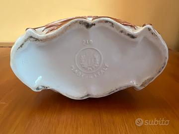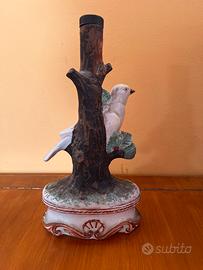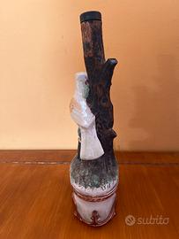 In vendita uno splendido decanter da collezione in ceramica policroma, autentico esempio di artigianato artistico italiano della metà del secolo scorso (circa anni '60). Prodotto dallo storico marchio Borghini, questo pezzo unisce l'arte della ceramica alla tradizione vinicola italiana. L'oggetto raffigura un delicato uccellino (canarino/cardellino) appollaiato su un tronco d’albero impreziosito da bacche rosse e foglie verdi. La base è rifinita con eleganti motivi a volute e dettagli color ruggine/oro che ne esaltano lo stile retrò. CONDIZIONI Stato: Ottime condizioni vintage. Integrità: Non presenta sbeccature, crepe o restauri evidenti. I colori sono ancora vividi e la vetratura è lucida. Dettagli: Completo del suo tappo originale a vite sulla parte superiore del tronco. CARATTERISTICHE TECNICHE Materiale: Ceramica dipinta a mano. Origine: Made in Italy. Dimensioni: Altezza circa 26 cm. Utilizzo: Perfetto come pezzo d'arredo per mobili bar, cucine classiche o per collezionisti di oggettistica vintage e bottiglie d'epoca.
