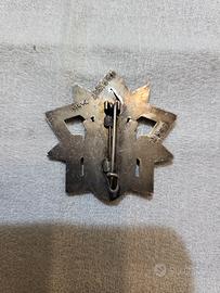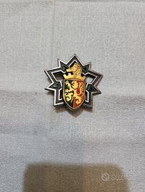Vendesi autentico e raro distintivo militare (insigne) del 3° Reggimento Dragoni (3ème Régiment de Dragons) dell'esercito francese. Un pezzo di storia militare, ideale per collezionisti esigenti di faleristica e insegne di reparto. Caratteristiche dettagliate: Unità: 3ème Régiment de Dragons (storica unità di cavalleria/blindati). Fabbricante: Marchiato sul retro "FRAISSE PARIS", uno dei produttori più prestigiosi e storici di insegne militari francesi, attivo sin dal XIX secolo. La presenza di questo marchio è garanzia di qualità e autenticità. Omologazione: Riporta il numero di omologazione ufficiale H586 (dove "H" sta per Homologation), che ne certifica l'approvazione ministeriale dell'epoca. Simbologia: Lo scudo presenta il leone rampante dorato su fondo bipartito nero e rosso (colori storici del reggimento), sormontato da una testa di drago dorata con il numero "3". La struttura esterna è una stella stilizzata con inserti smaltati verdi. Fissaggio: Spilla posteriore originale e perfettamente funzionante, con meccanismo di chiusura a scatto. Stato di conservazione: Ottimo. Gli smalti sono vividi, integri e non presentano scheggiature. Il metallo mostra una leggera e affascinante patina del tempo che ne attesta l'autenticità, senza ossidazioni pesanti. Periodo stimato: Secondo dopoguerra (anni '50-'60). #militaria #francia #distintivo #insigne #dragoni #3dragoni #fraisseparis #collezionismo #storia #esercito #faleristica #cavaleria #retro #vintage #subitoit #affari #milano #H586