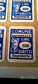 Raro Libretto con 1000 marche di Tasse Comunali COMUNE di MONREALE (PA) – DIRITTI SEGRETERIA Lit 500, COMPLETO .