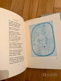 con disegni inediti dell’autore riprodotti a colori ed applicati alla pagina; fra la carta di occhietto e il frontespizio è applicato un foglio di leggera carta velina azzurra (11 x 12,5 cm.) con un testo di Jean Cocteau (lo stesso riprodotto sulla fascetta).