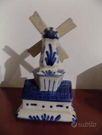 Classico e ricercato mulino a vento olandese in ceramica, con le caratteristiche pale mobili.