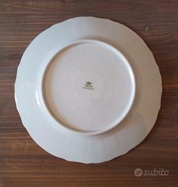 Bellissimo e raro piatto da portata vintage in porcellana bianca e bordino d'oro a motivo floreale RGK Czechoslovakia Bernadotte.