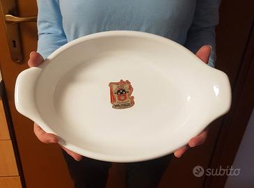 Piatto ovale in metallo smaltato originale vintage, prodotto in Italia dalla Smalteria Metallurgica Veneta, linea QUEEN – Qualità Garantita.