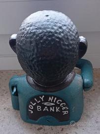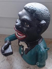 si tratta di un salvadanaio meccanico in ghisa noto come "Jolly Boy Bank