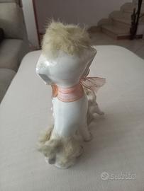 Classica composizione composta da una mamma barboncino con occhiali e fiocco, che tiene al guinzaglio (catenella originale) i suoi due cuccioli. La lavorazione è la celebre ceramica a "spaghetti", tipica dell'artigianato artistico della metà del secolo scorso. La mamma indossa dei deliziosi occhiali neri e dettagli in finta pelliccia sulla testa. Perfetto per amanti del genere Shabby Chic, Kitsch d'autore o collezionisti di porcellane canine. Può presentare lievissimi e trascurabili segni del tempo. Dimensioni indicative nelle foto. #VintagePoodle #CeramicaSpaghetti #MidCenturyModern #BarbonciniVintage #KitschDecor #Collezionismo #HomeDecor #Anni60 #ShabbyChic #CeramicaVintage