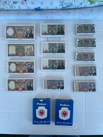 Vendesi esclusiva valigetta da gioco portatile vintage, ideale per collezionisti o appassionati di giochi di carte. L'oggetto si presenta in una pratica custodia morbida marrone, facilmente trasportabile grazie alla maniglia superiore. A differenza dei classici set, questo utilizza fiches rettangolari che riproducono i tagli della Lira Italiana (es. Caravaggio, Bellini, Bernini), rendendo ogni partita un tuffo nel passato. Disponibile per spedizione o consegna a mano in zona (settimo torinese). #poker #setpoker #fichesvintage #lire #lireitaliane #vecchielire #vintage #anni80 #collezionismo #modernariato #regalovintage #madeinitaly #amarcord #giochidicarta #numismatica