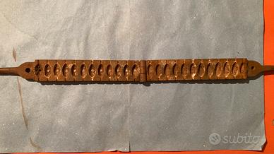 Per collezionisti esigenti e amanti dell'antiquariato tecnico. Vendo raro stampo multiplo da fusione per ogive/piombi, risalente a cavallo tra fine '800 e primi '900. L'oggetto è stato volutamente lasciato nelle condizioni di ritrovamento per preservarne l'integrità storica e l'incredibile patina originale. Non è stato lucidato né trattato, mantenendo quell'aspetto rustico e autentico che solo il tempo può conferire. • Dettagli Tecnici: Stampo a cerniera in ferro pesante con manici in legno tornito originali. • Stato di conservazione: Eccellente pezzo "conservato". La meccanica è solida e le cavità sono ben definite. • Perché acquistarlo: Ideale come complemento d'arredo in stile Industrial, per vetrine di militaria o come raro attrezzo da pesca/caccia d'altri tempi. Un oggetto genuino, non artefatto, che racconta la sua storia al primo sguardo.