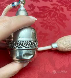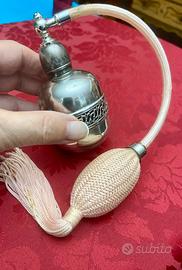 Antica bottiglia di profumo in argento 800. Spruzzatore di profumo antico. Presenta due ammaccature nel fondo. #Bottigliedacollezione
