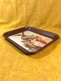 Bellissimo Vassoio pubblicitario vintage, in metallo policromo della Fernet Branca Milano. Rettangolare con bordo bruno sul fondo un’immagine storica della famosa bevanda con l’aquila sul mondo, nel retro tutta la scritta di rappresentazione del prodotto è in lingua inglese. In ottimo stato generale piccolissimi segni di uso come da foto, cm. 34x28x3.