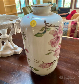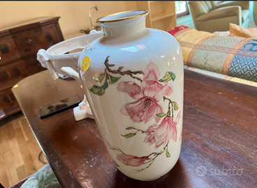 PREZIOSO e MAESTOSO vaso Potiche realizzato in porcellana bianca, decorato con fiori di magnolia e profili in oro, è un pezzo originale di HEINRICH Bavaria Selb dipinto a mano. Articolo di alta qualità ed eleganza realizzato dalla rinomata Manifattura tedesca Heinrich. Antico risalente ai Primi del 900. CONDIZIONI: ottimo stato conservativo ma essendo un articolo antico/vintage può presentare i lievi segni del tempo che ne attestano l'originalità e il fascino.. Da COLLEZIONE o Idea Regalo. MISURE: h33xdiametro20cm