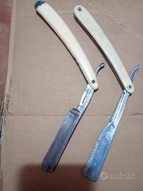 nr. 2 rasoi vintage da barbiere con manico bianco di cui uno con lama in acciaio affilata mentre l' altro bisogna mettere la mezza lametta... entrambi da collezione