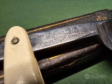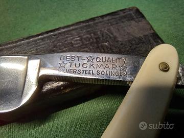 Antico rasoio a mano libera Tuckmar Solingen completo di custodia, in buone condizioni.