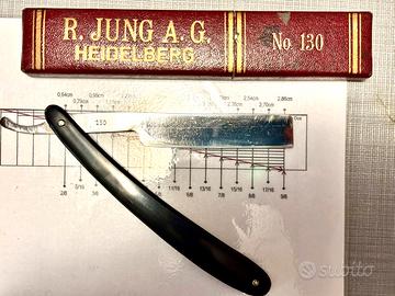 Rasoio vintage a mano libera DORKO 130 MICROTOME, lama da 5/8 in acciaio al carbonio con molatura da microtrome (simile al Kamisori). Solo rinfrescato su belga Les Latneuse e scoramellato. Condizioni come nuovo. Rasoio nato dalla collaborazione con la R. Jung A.G., azienda specializzata in strumenti da taglio di precisione per laboratori di ricerca. Made in Solingen.